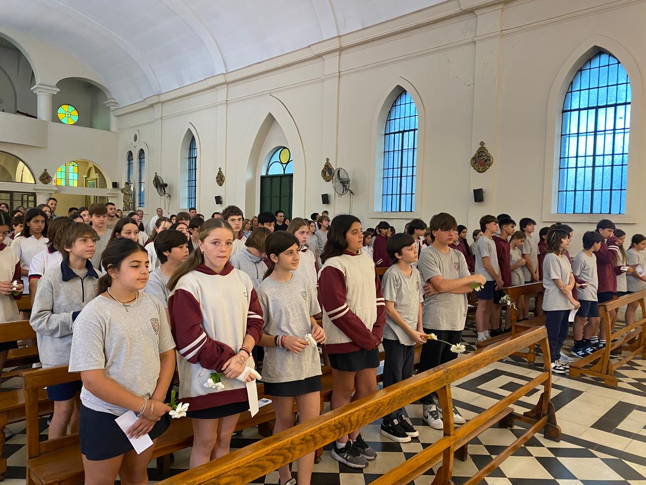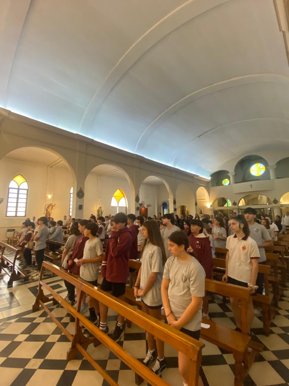 Los alumnos de 7° Grado A y B se reunieron para participar de este acto de fe que simboliza la culminación de sus años en el Nivel Primario y el paso hacia la Secundaria. La consagración es un acto profundo de compromiso personal y espiritual, donde los estudiantes ponen bajo el amparo de la Virgen su futuro y los desafíos de la nueva etapa que comienzan.