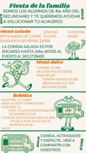 Lo que hace especial a esta fiesta es que *toda la comida y bebida estará a cargo de los alumnos de cuarto año*, y la recaudación será destinada al viaje de egresados. De esta manera, los asistentes podrán disfrutar de una tarde divertida mientras apoyan a los estudiantes.