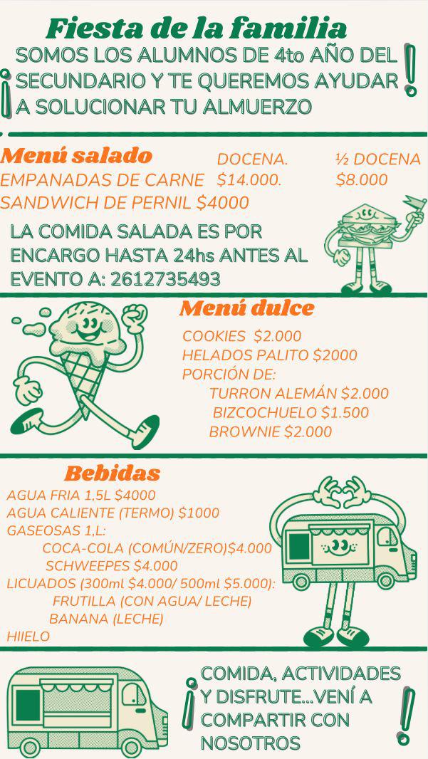 Lo que hace especial a esta fiesta es que *toda la comida y bebida estará a cargo de los alumnos de cuarto año*, y la recaudación será destinada al viaje de egresados. De esta manera, los asistentes podrán disfrutar de una tarde divertida mientras apoyan a los estudiantes.